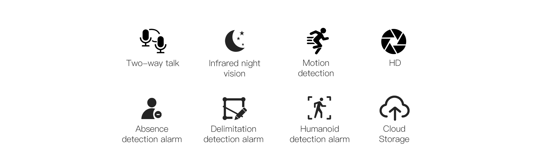 | Alarm | Alarm detection | Supports Motion detection; Humanoid detection; Humanoid tracking; Absences alarm; |