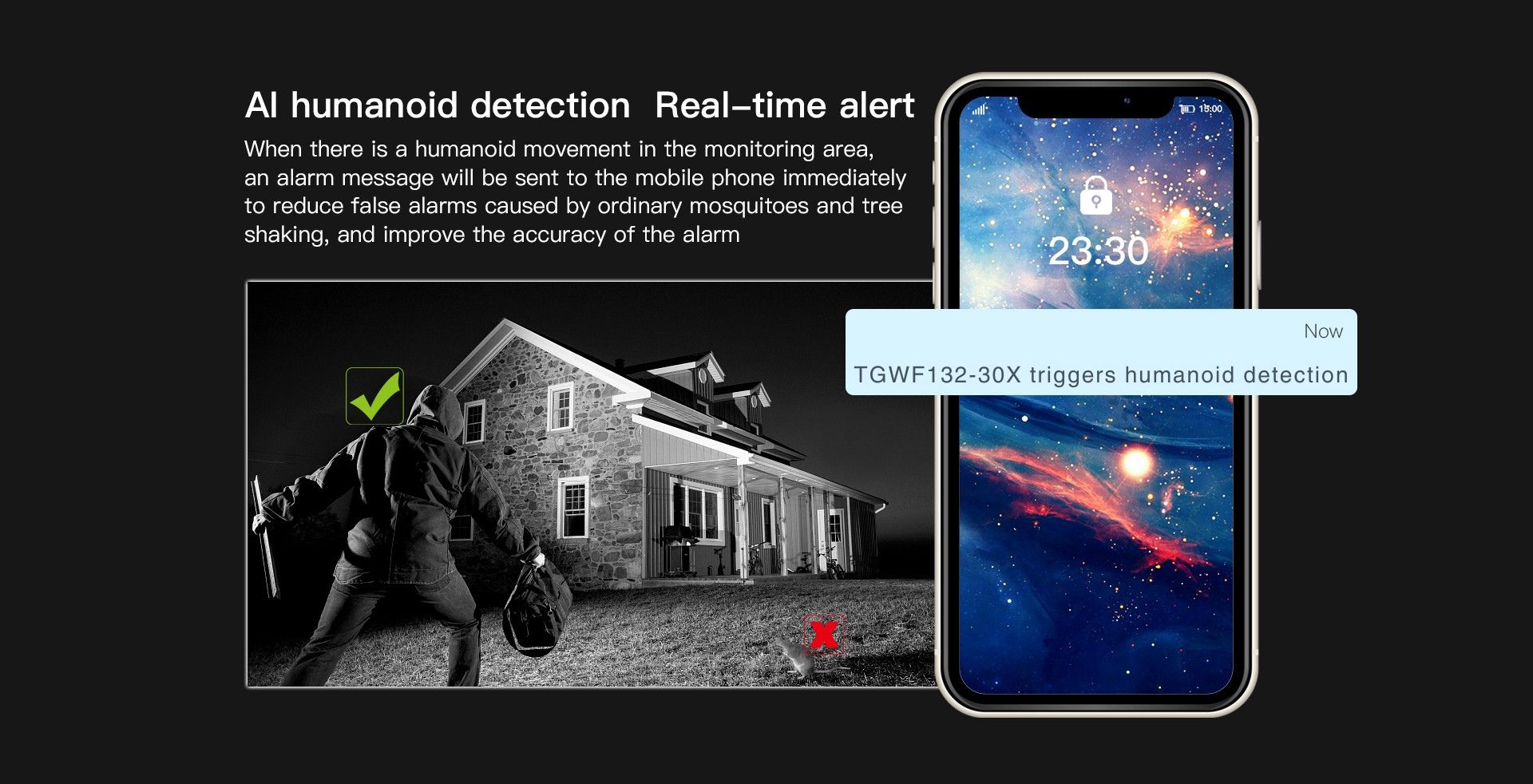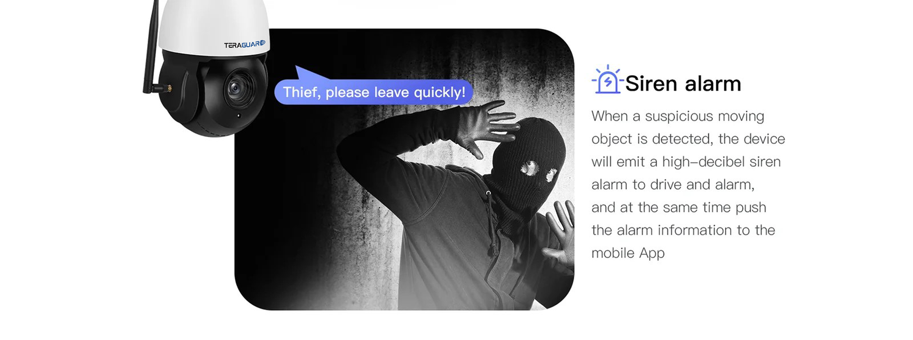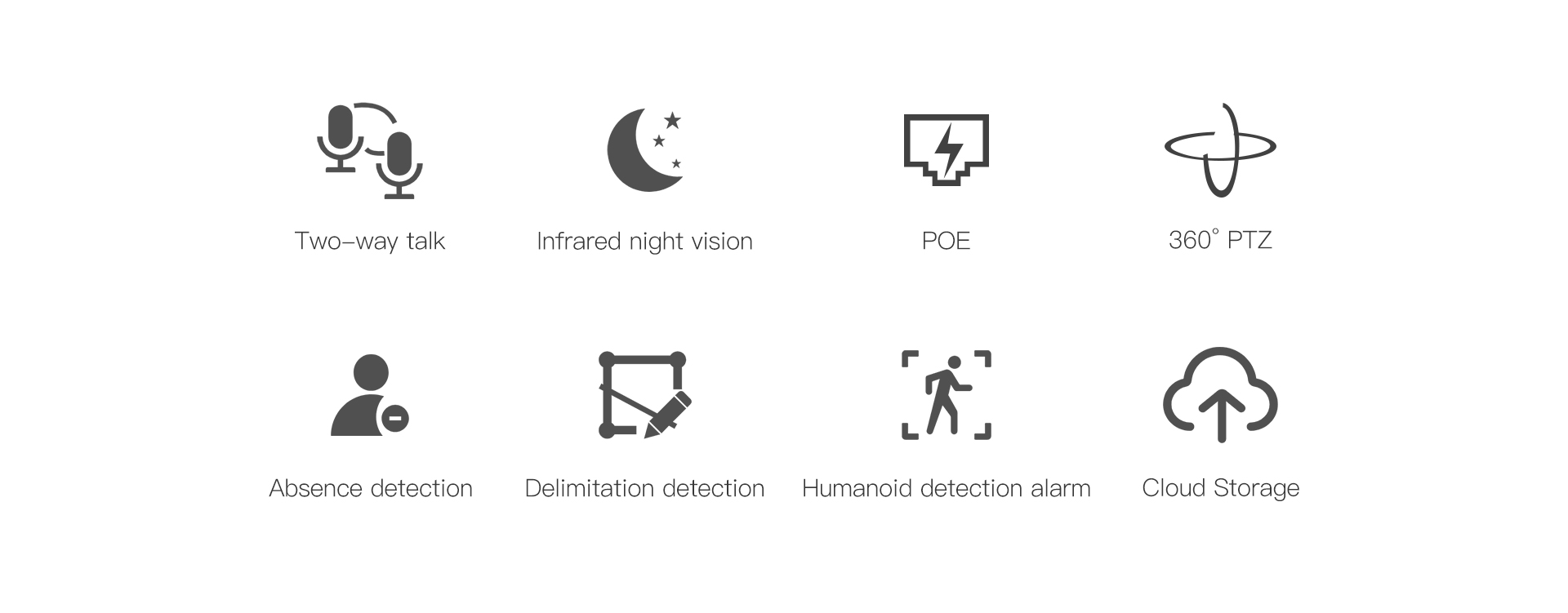 | Alarm | Alarm detection | Supports Motion detection; Humanoid detection; Humanoid framing; Siren alarm; Absence detection; Delimitation detection |